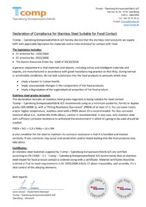 Declaration of Compliance for Stainless Steel